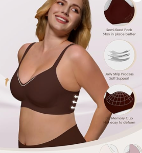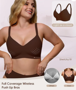 Womens Soft Comfortable No Underwire Bras V Neck Seamless Push Up Bralettes Full Coverage Tshirt Brassiere