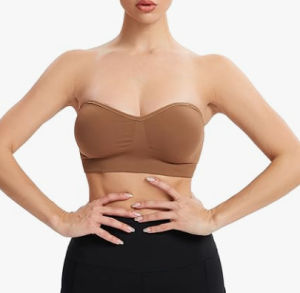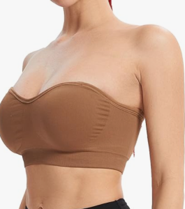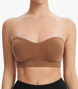 • MATERIAL – The strapless bra is made of nylon and spandex, the elastic seamless bandeau bra feels ultra soft without causing any irritation reaction. Like your second skin. Comfortable and stretchy fabric with Non-Slip silicone upper edges stays the bandeau bra in place and prevents it from slipping off.